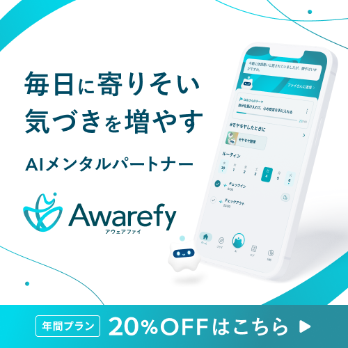 この「思考のくせ」に気づき、自分を客観視できるようになるための強力なサポーターがAwarefy(アウェアファイ)なのです。